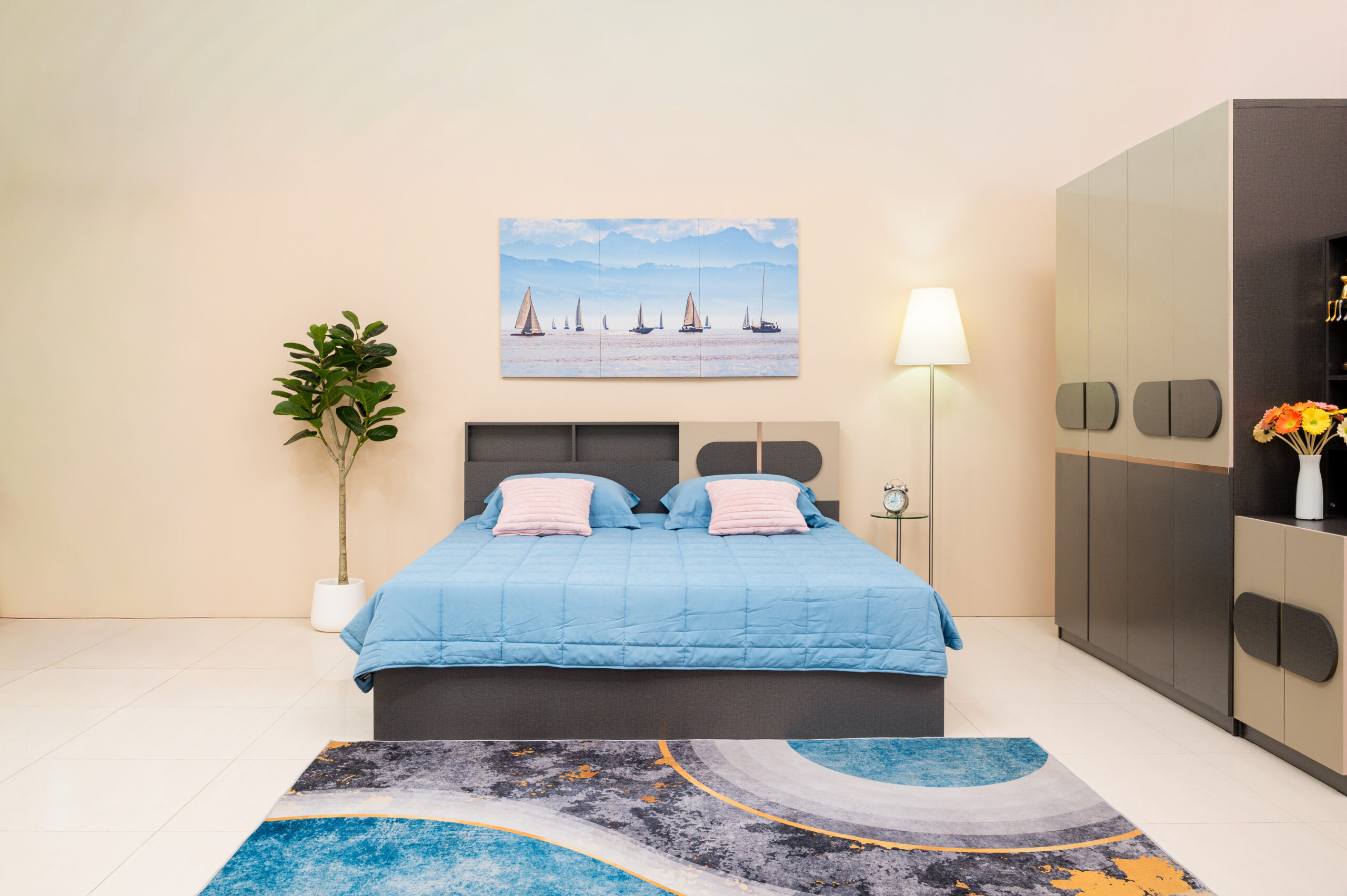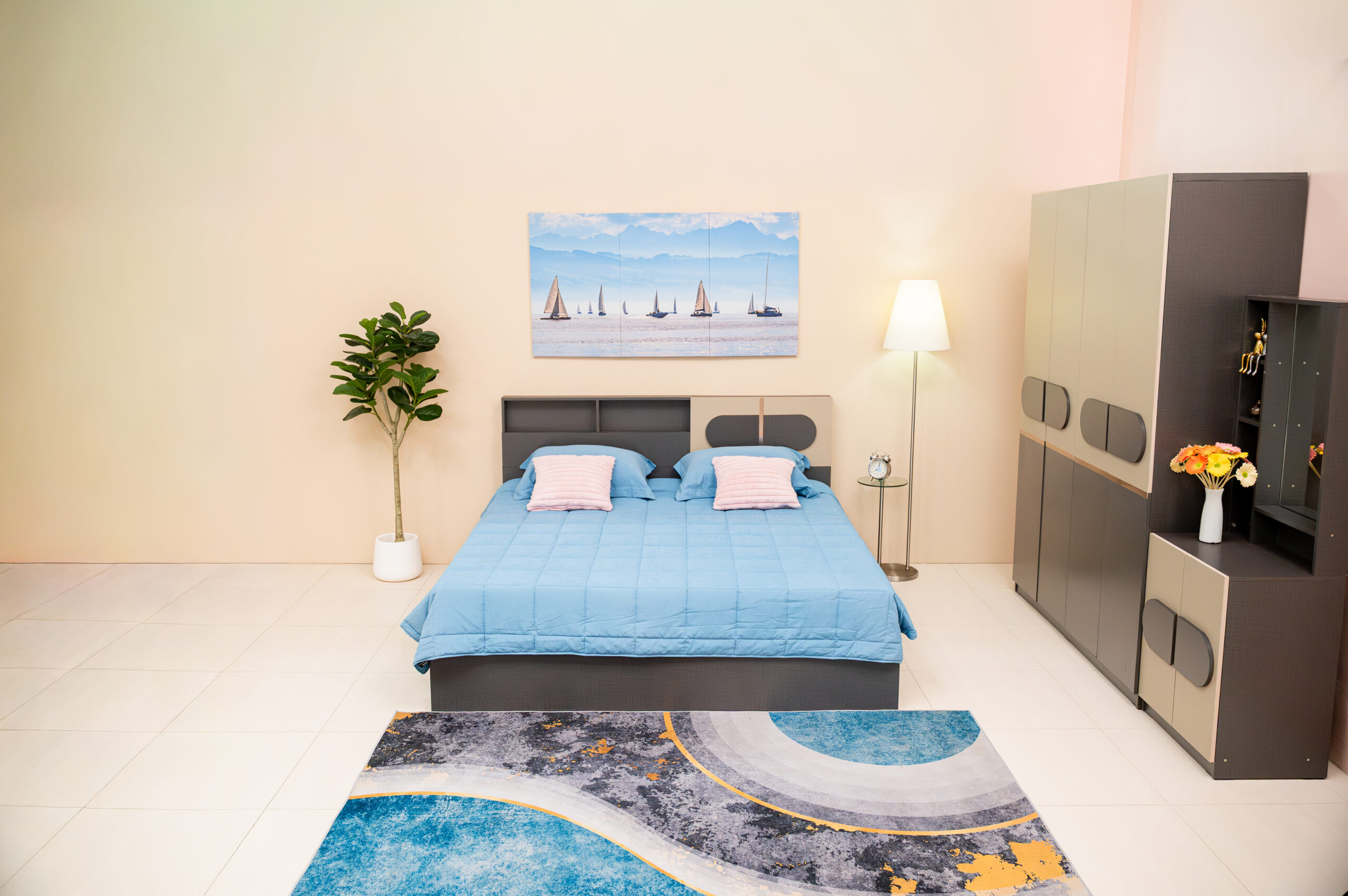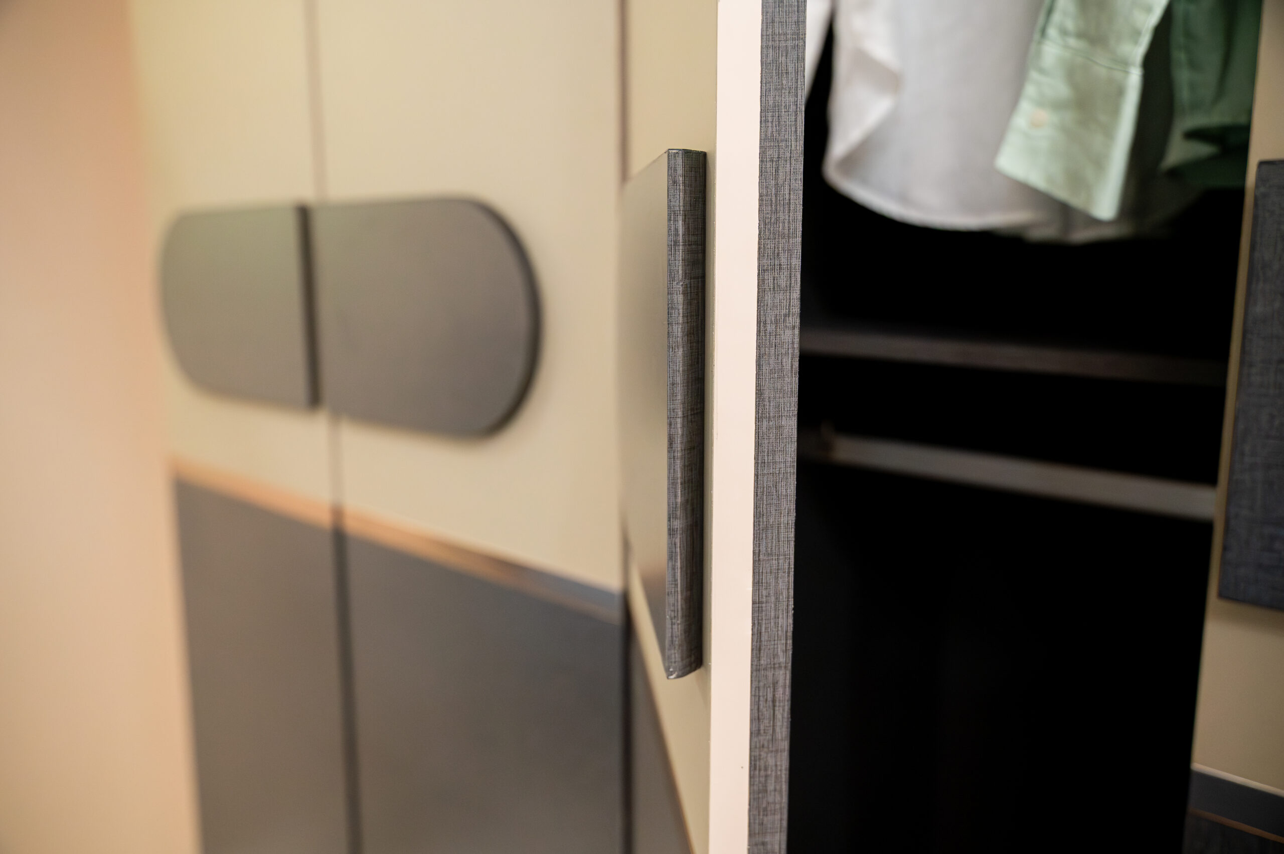 ชุดห้องนอนทูโทนดีไซน์ Geometric พร้อมมือจับทรงแคปซูล