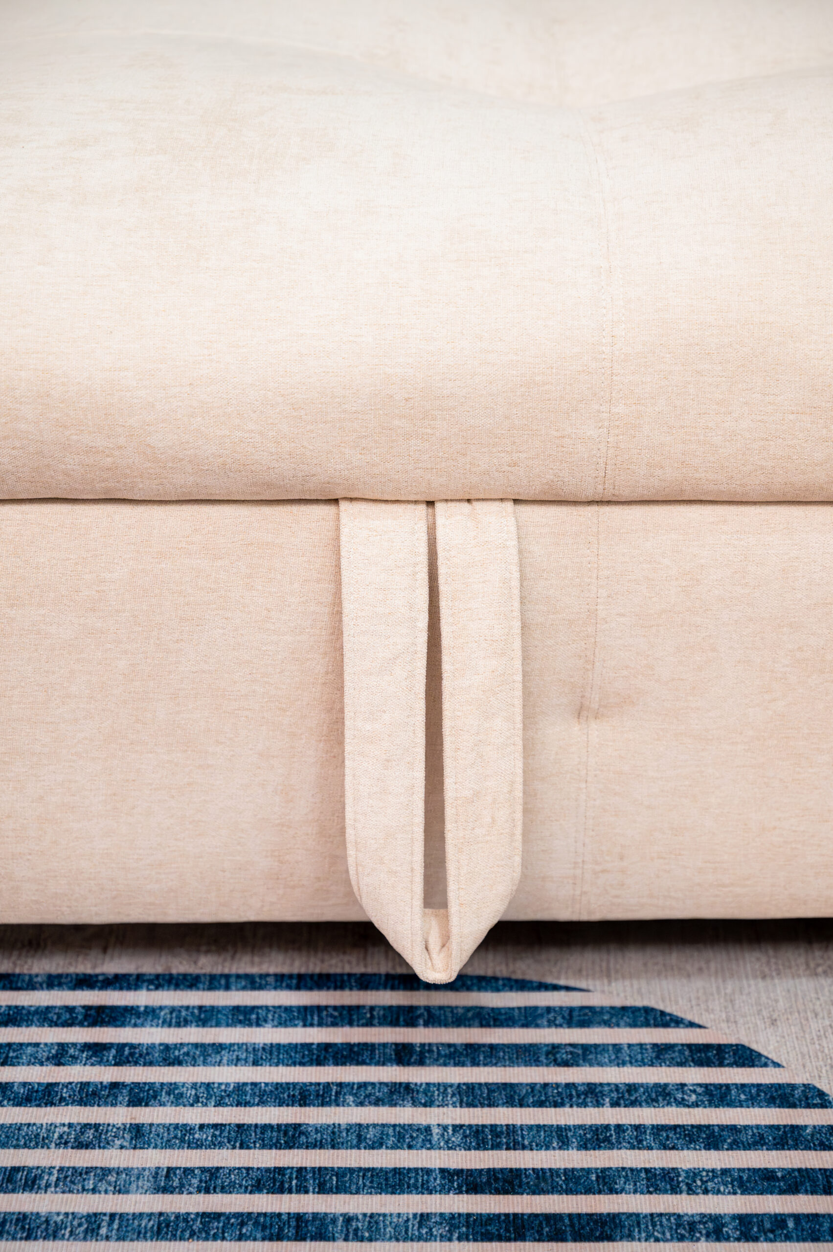 โซฟาเบดผ้าสีครีมสไตล์มินิมอล พร้อมฟังก์ชันปรับนอนและช่องเก็บของ