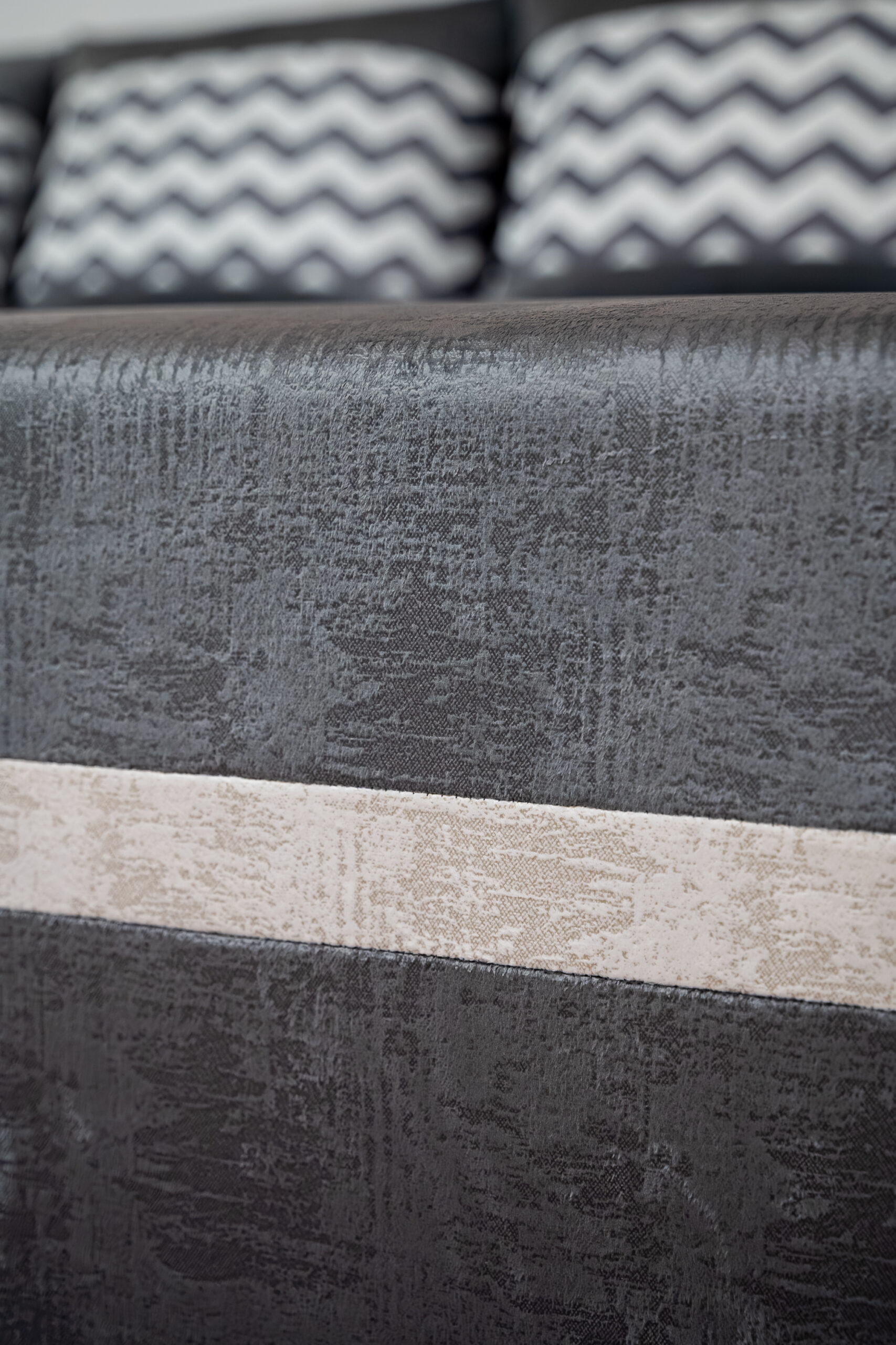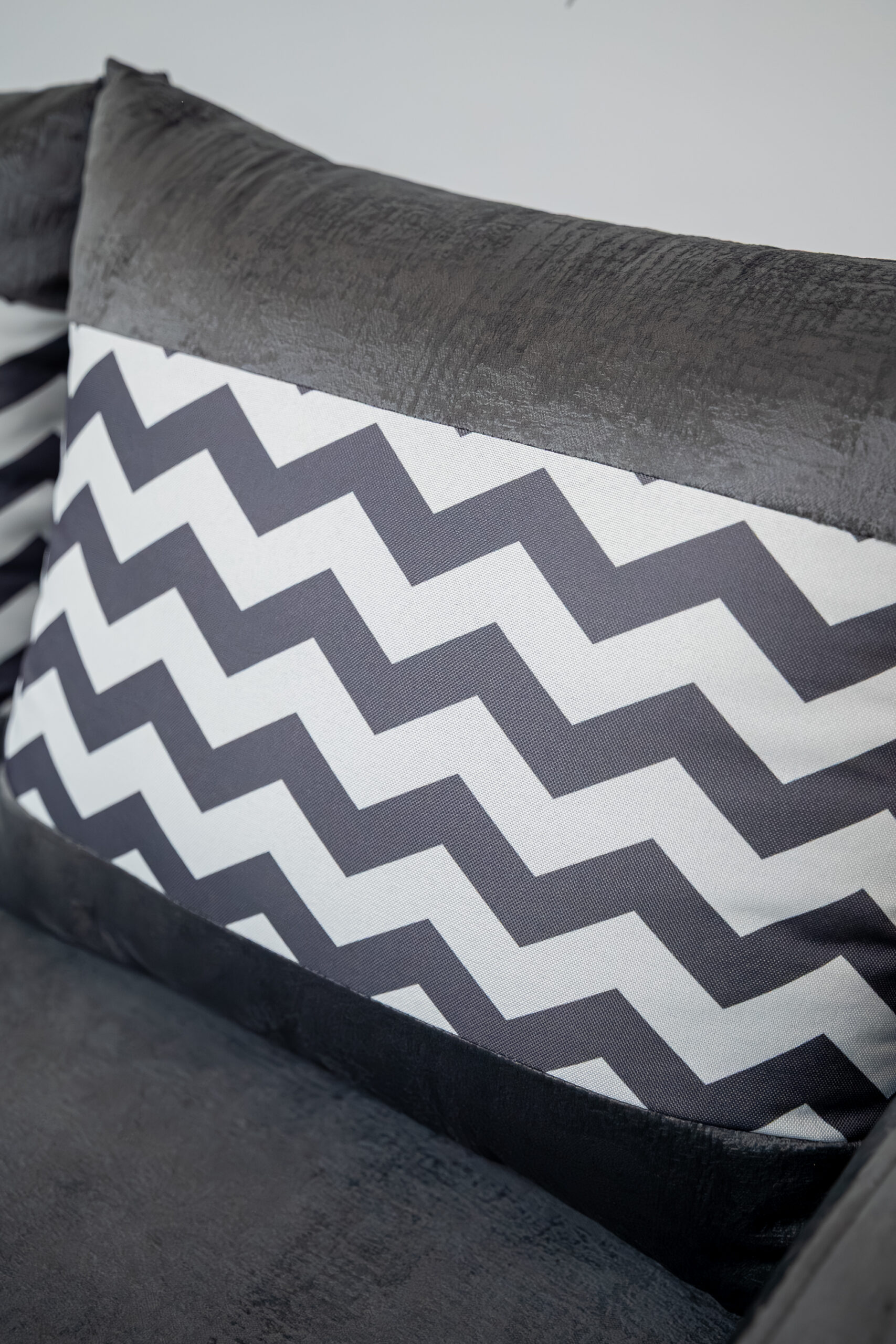 โซฟาเบด L-Shape สีเทาชาร์โคล ผสานลูกเล่นหมอนลาย Chevron