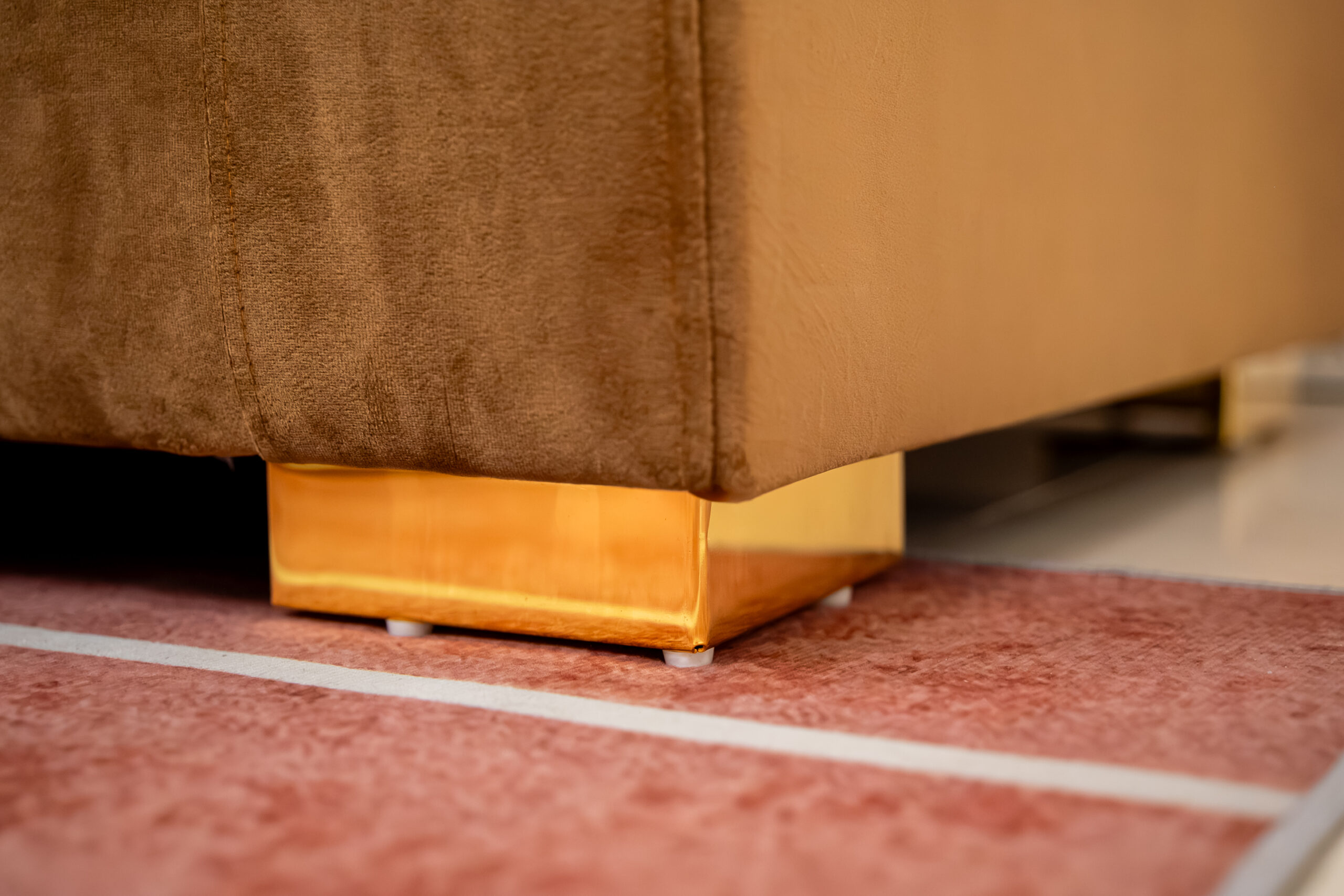 โซฟา 3 ที่นั่งหุ้มผ้ากำมะหยี่สี Golden Brown ดีไซน์ Luxury Gold