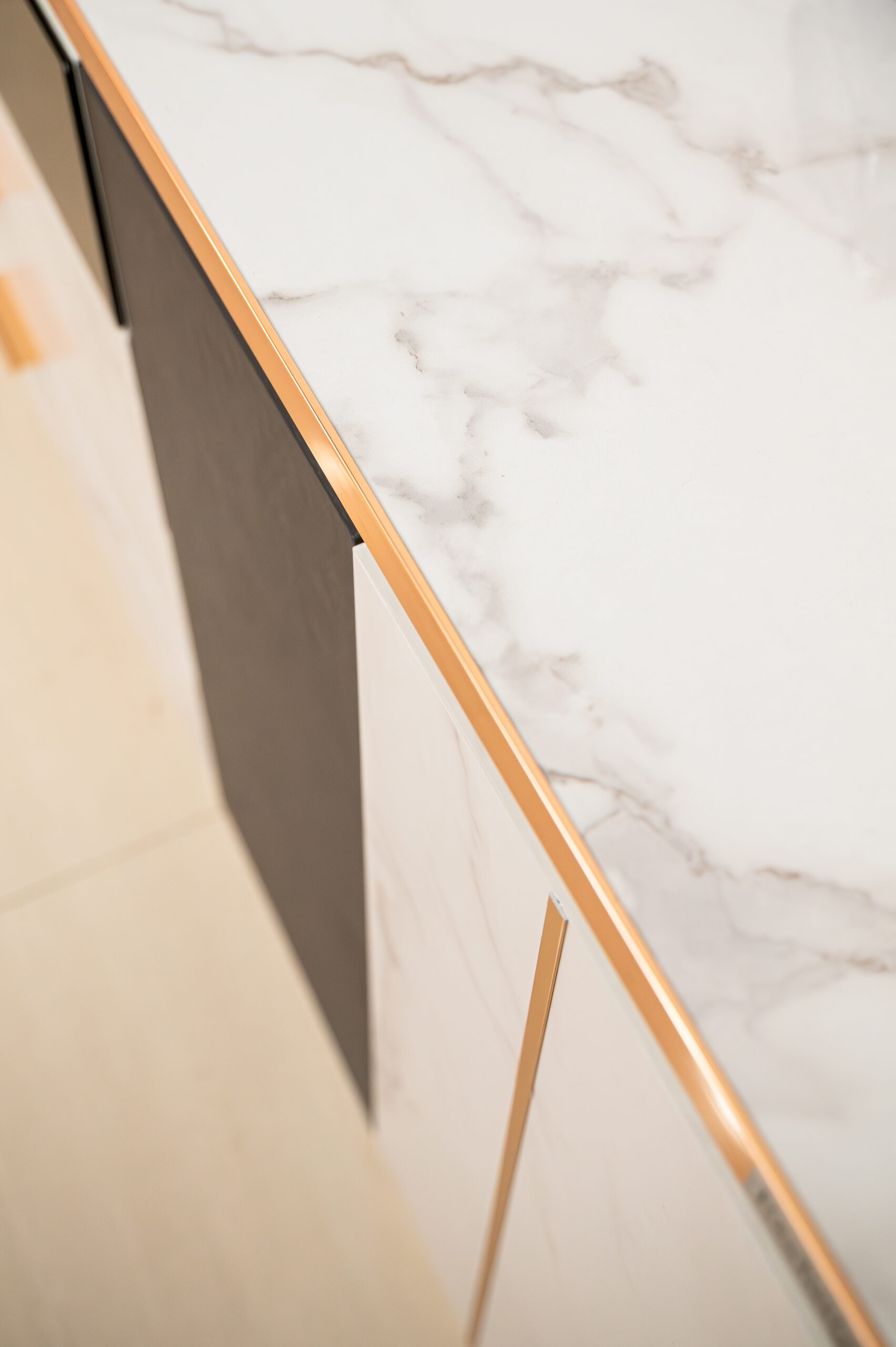 ไซด์บอร์ดลายหินอ่อนดีไซน์ Modern Luxury ตัดขอบ Pink Gold